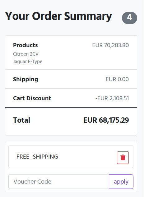 For all cart with amount bigger than EUR 30,000,- get 3% cart discount.