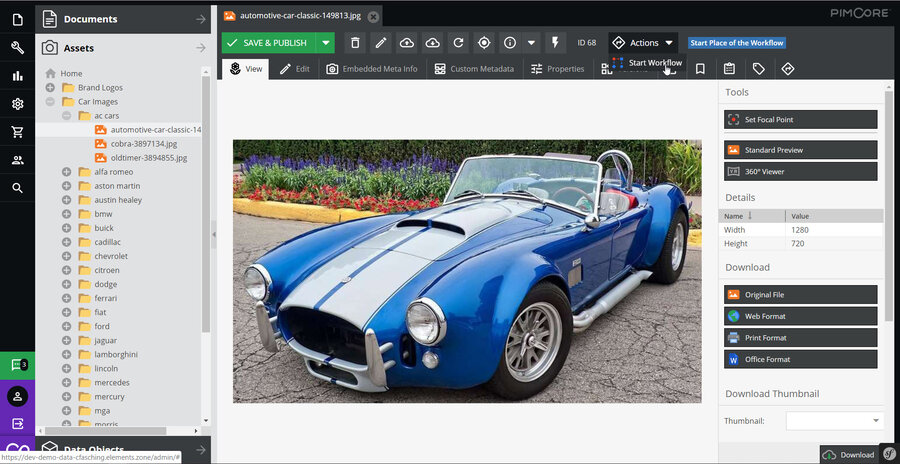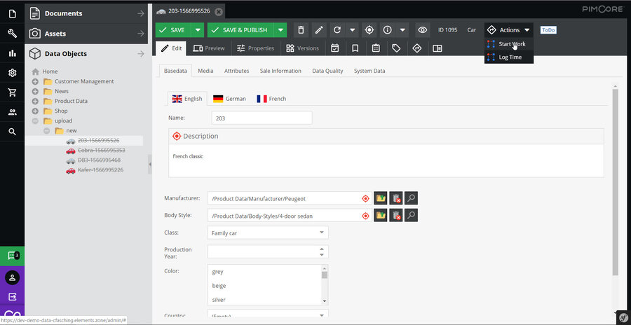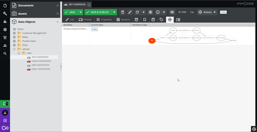 A bit more complex workflow on data objects, just open a car object in /upload/new to see the workflow